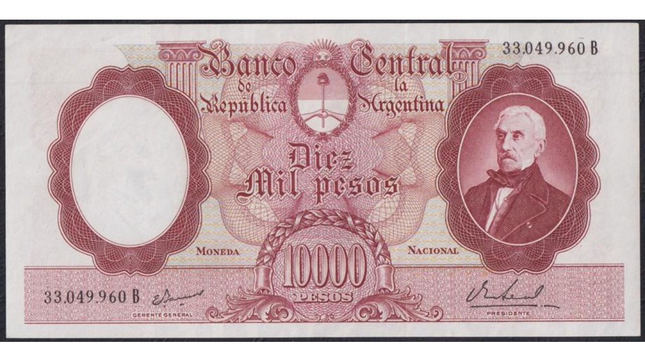 Аргентина 10000 песо (1961-1969) 33.049.960 B (ARGENTINA 10000 Pesos (1961-1969)) P 281(5): aUNC