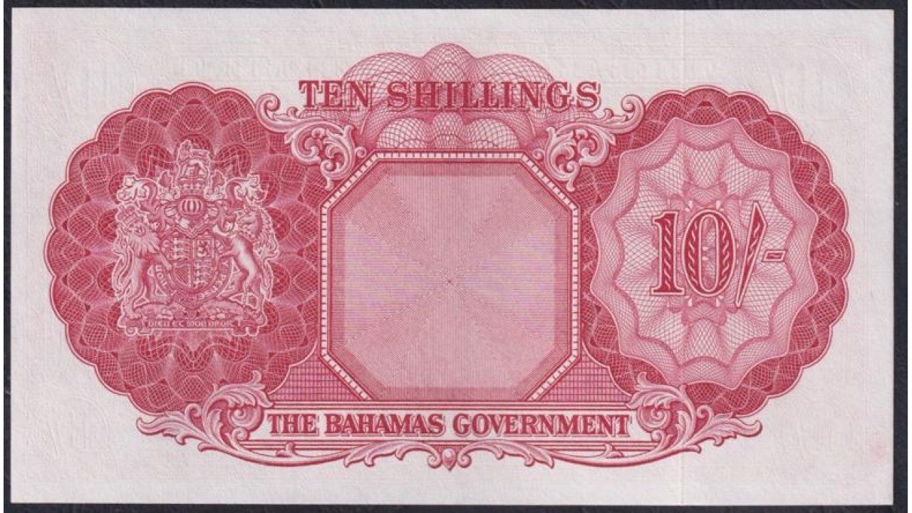 Багамские Острова 10 шиллингов L.1936(1953) года, РЕДКИЕ (BAHAMAS 10 Shillings Bahamas Government L. 1936 (1953)) P 14d: UNC