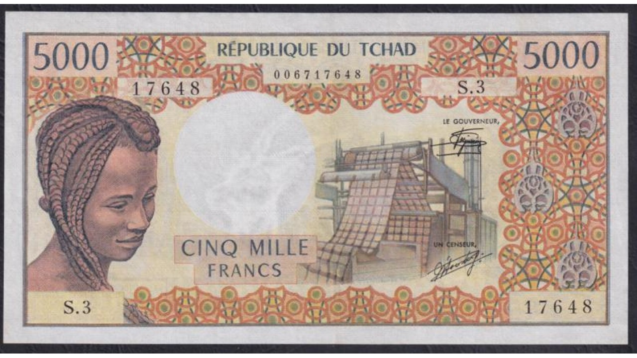 • Чад 5000 франков 1978 года, 17648 (CHAD 5000 francs 1978) P 5b: XF