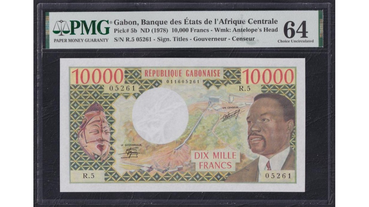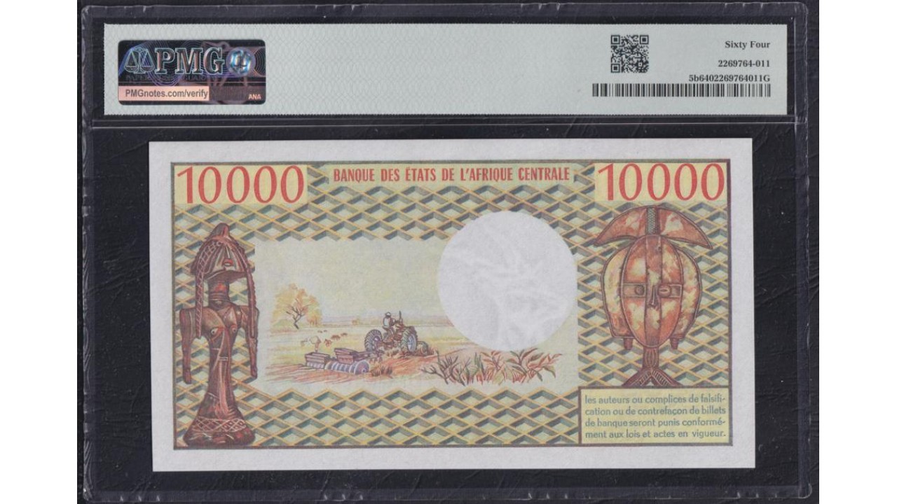 Габон 10000 франков 1974-1978 год, РЕДКИЕ, Реже чем P-5a (Gabonaise 10000 francs 1974-1978) P 5b: PMG 64 UNC