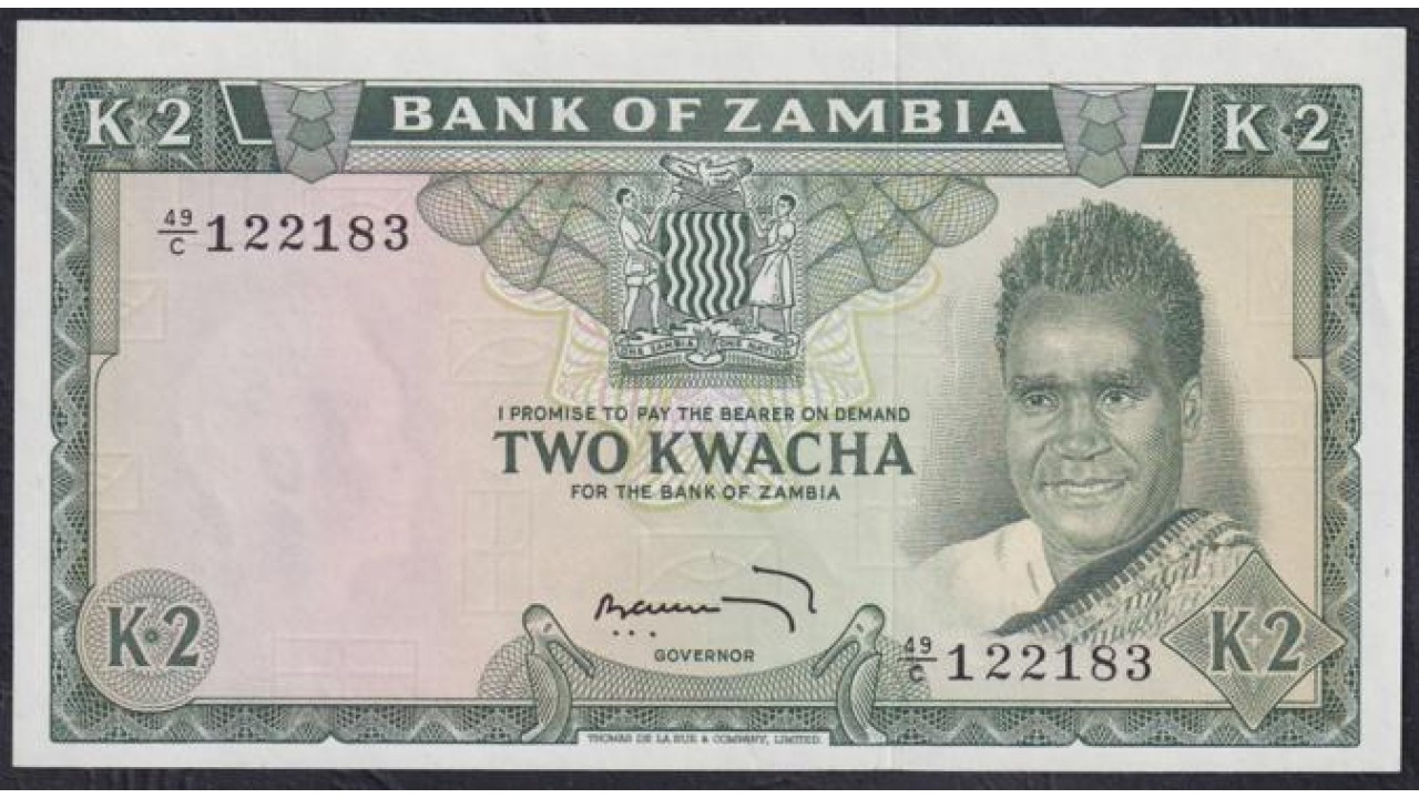 Замбия 2 квача ND (1969 год) (ZAMBIA 2 kwacha ND (1969)) P 11c: UNC
