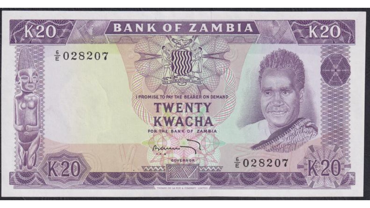 • Замбия 20 квача ND (1969 год) (ZAMBIA 20 kwacha ND (1969) P 13c: UNC