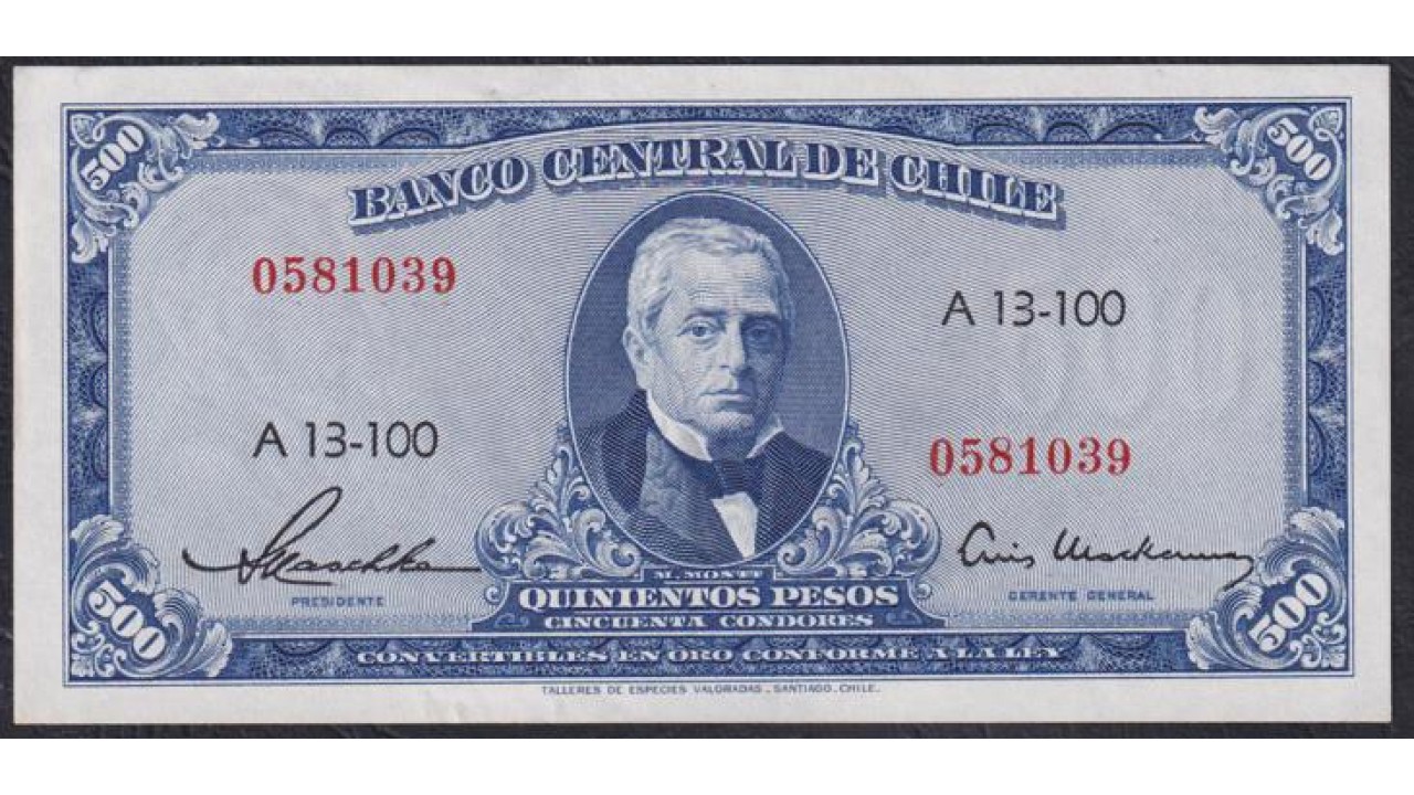 Чили 500 песо (1947-1959) (CHILE 500 Pesos (1947-1959)) P 115(5): UNC
