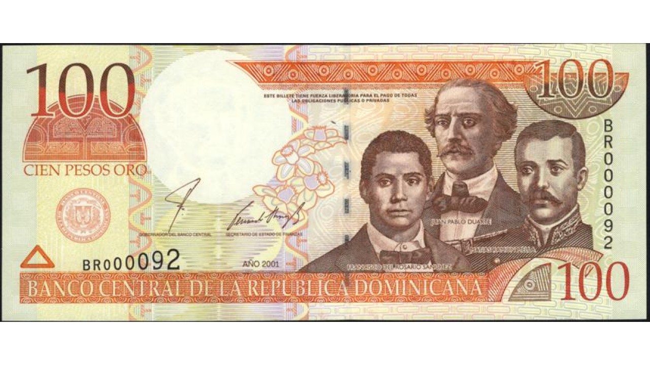 • Доминиканская Республика 100 песо 2001 (DOMINICAN REPUBLIC 100 Pesos 2001) P 171а : UNC