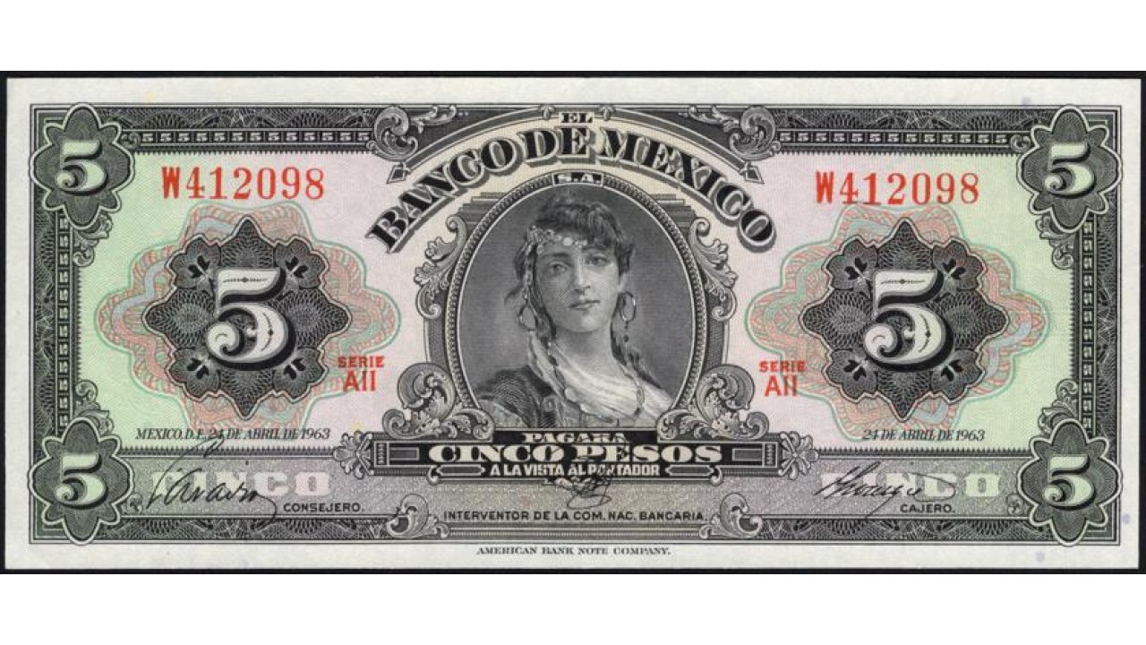Мексика 5 песо 1963, серия AII (MEXICO 5 Pesos 1963) P 60h : UNC