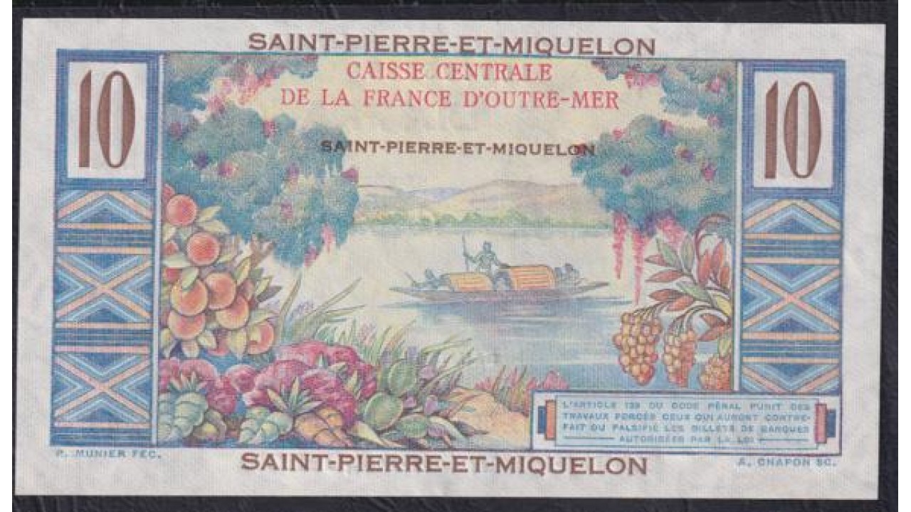 Сент - Пьер и Микелон 10 франков (1950-1960) (SAINT PIERRE & MIQUELON 10 Francs (1950-1960)) P 23 : UNC