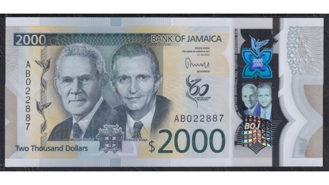 Ямайка 2000 долларов 2022 года, 60 лет Независимости, Полимер (Jamaica 2000 Dollars 2022, Polymer) P W100: UNC
