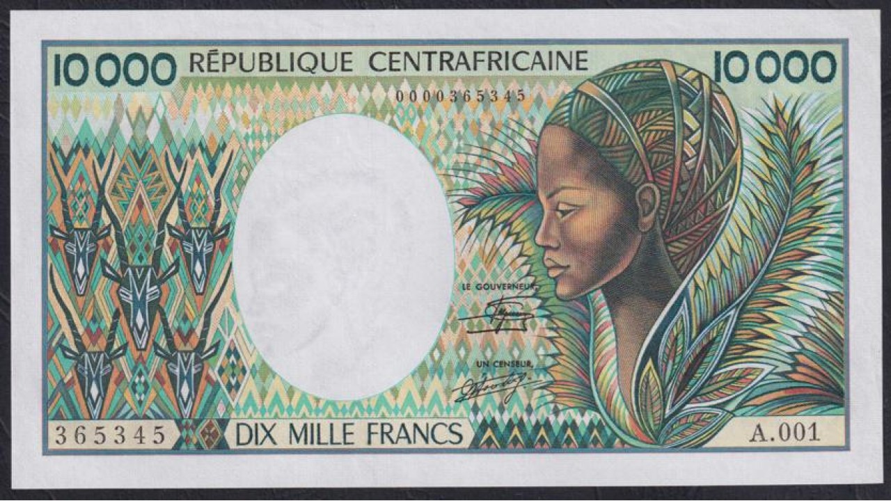Центральная Африканская Республика 10000 франков (1983) РЕДКИЕ, A.001 365345(Central African Republic 10000 francs (1983)) P 13(2): UNC
