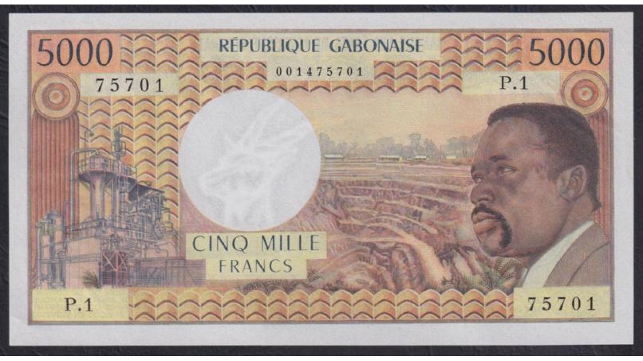 • Габон 5000 франков 1974 -1978 год, Без Подписей!!! УНИКУМ!!! (Gabonaise 5000 francs 1974 - 1978, Wihout Signature, RARE) P 4a: UNC
