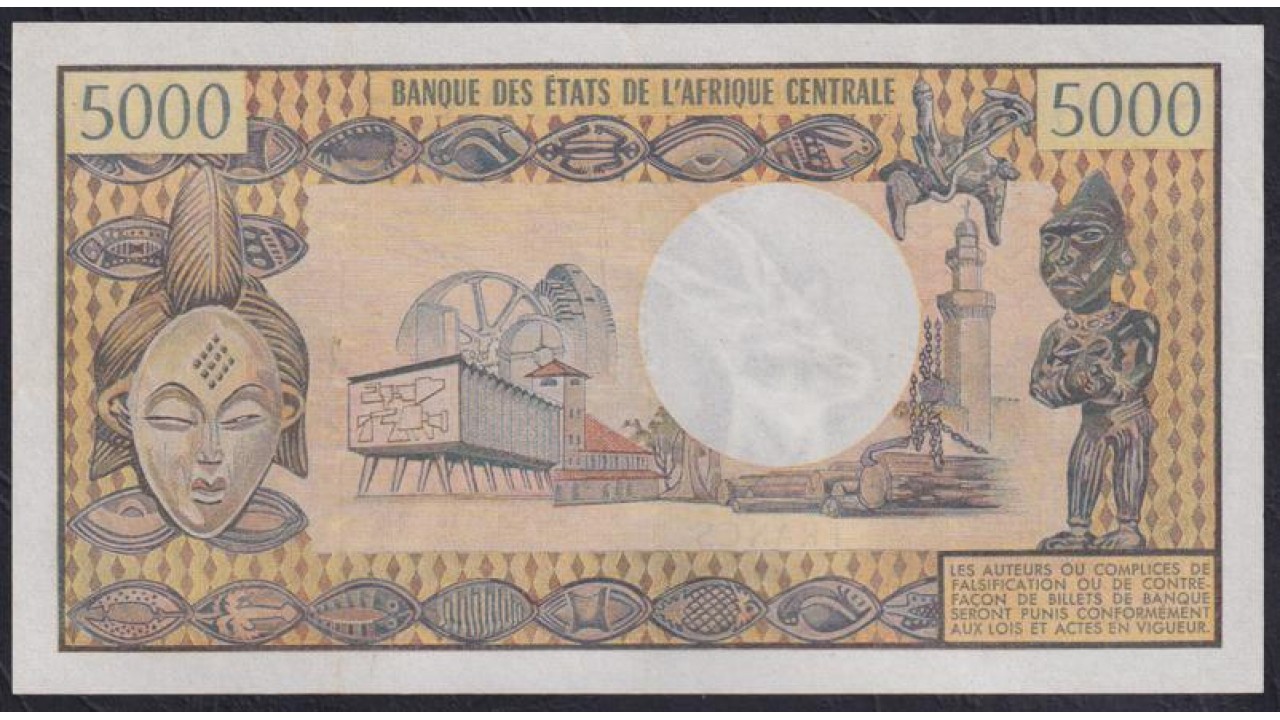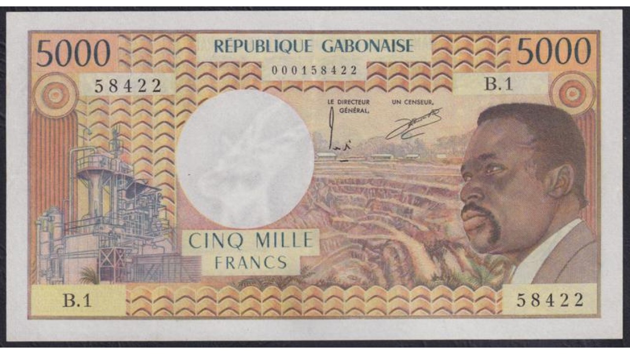 • Габон 5000 франков 1974 -1978 год, Реальная Редкость!!! (Gabonaise 5000 francs 1974 - 1978) P 4a: aUNC/UNC
