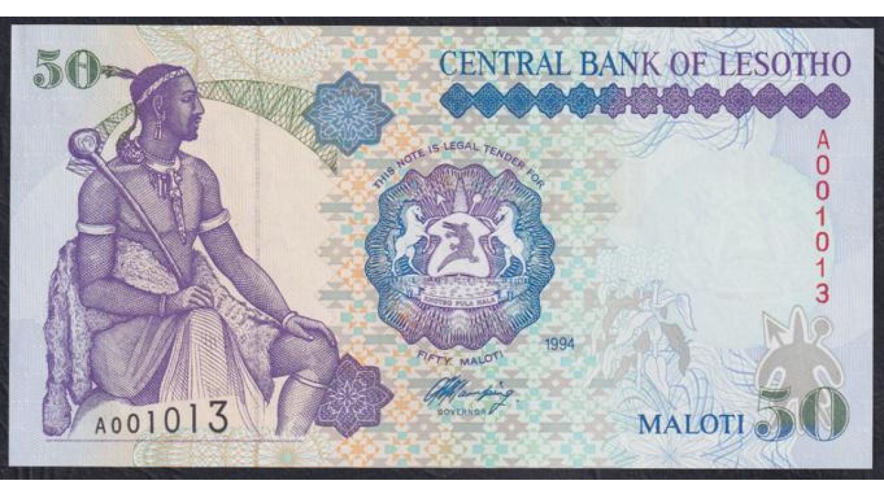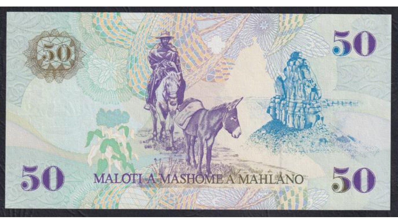 • Лесото 50 малоти 1994 года, A001013 (Lesotho 50 maloti 1994) P 17a: UNC