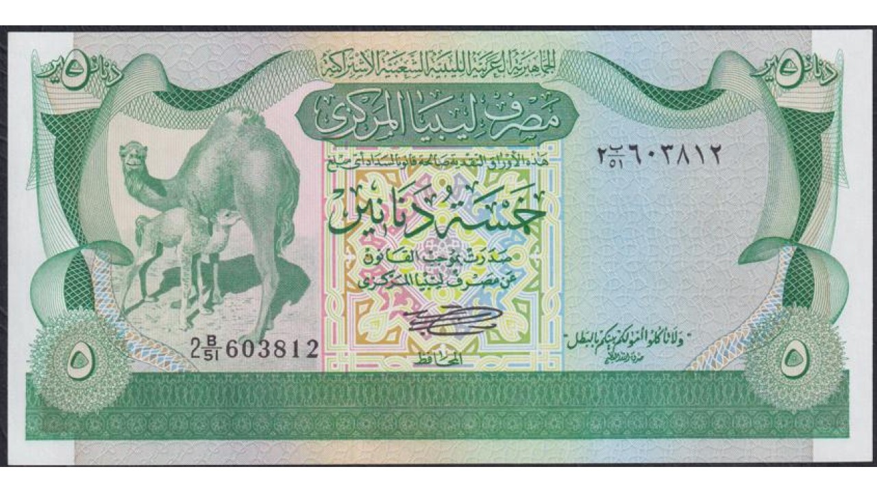 • Ливия 5 динара б/д (1981), 2 B/51 603812, редкая в UNC (Libya 5 dinars ND (1981)) P 45a: UNC