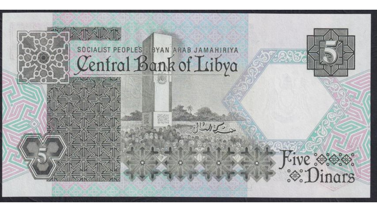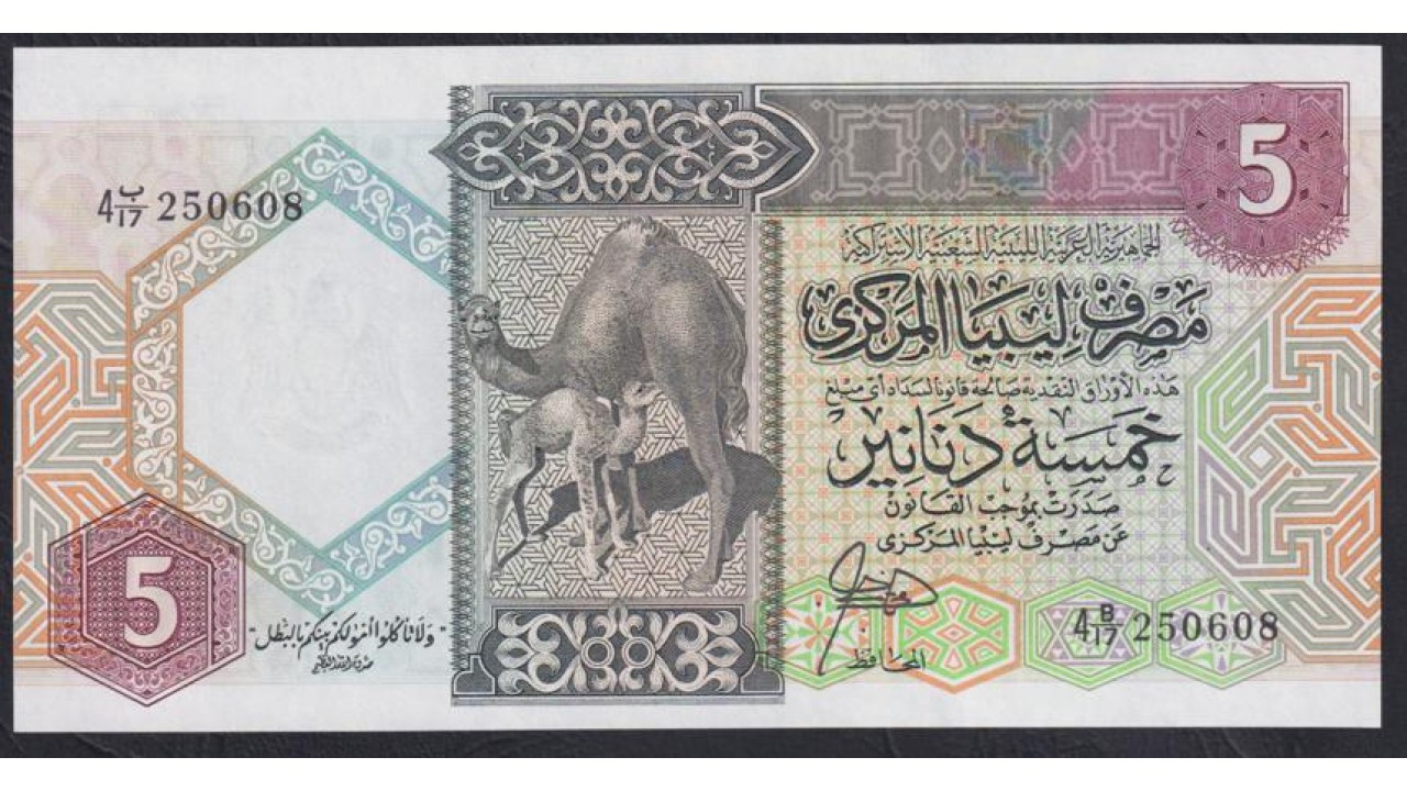 • Ливия 5 динаров б/д (1991) (Libya 5 dinars ND (1991)) P 55: UNC