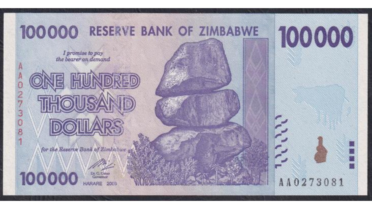 Зимбабве 100000 долларов 2008 год (ZIMBABWE 100000 dollars 2008g.) P75:Unc В наличии в магазине в количестве номера и серии банкнот могут не соответствовать выставленной на фото по остаткам. Просьба до заказа уточнять серию и номер банкноты если она имеет для Вас принципиальное значение. Состояние у Всех банкнот одинаковое указанное в описании.