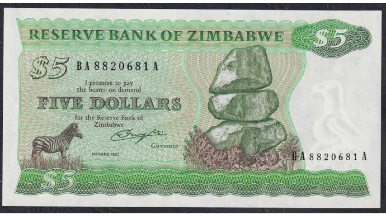 • Зимбабве 5 долларов 1982 (ZIMBABWE 5 dollars 1982) P 2b: UNC