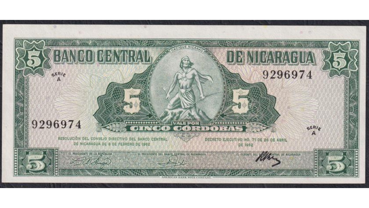 Никарагуа 5 кордоба 1962 года, 9296974 (NICARAGUA 5 Córdobas 1962) P 108: UNC