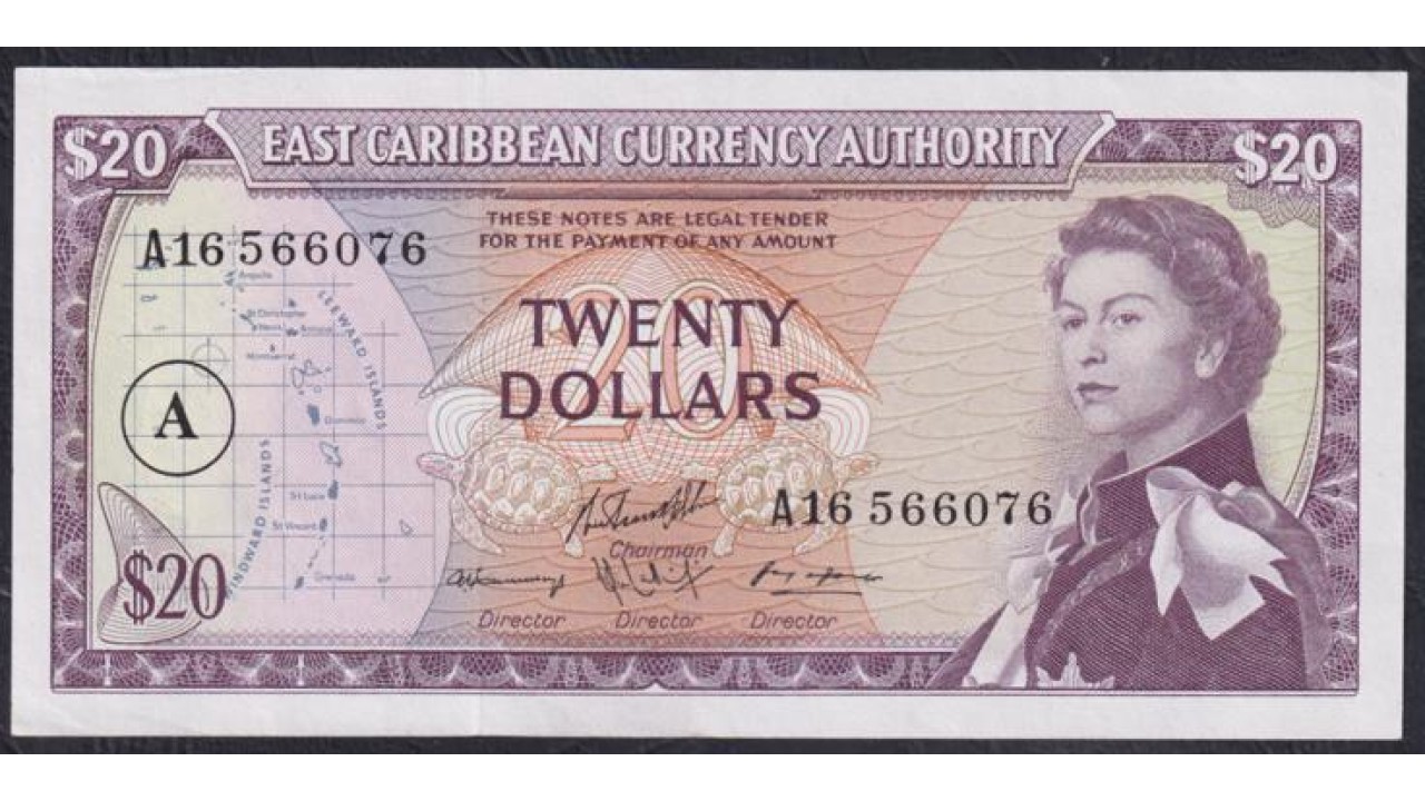 Восточные Карибские Острова 20 долларов (1965), Антигуа (EAST CARIBBEAN STATES 20 Dollars (1965)(Antigua)) P 15h: XF+