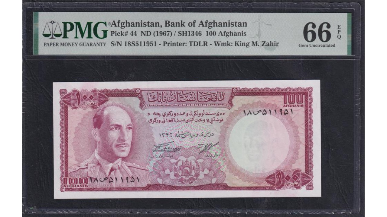 Афганистан 100 афгани SH 1346 (1967 г.) (AFGHANISTAN 100 Afghanis SH 1346 (1967)) P 44: PMG 66 Gem UNC EPQ