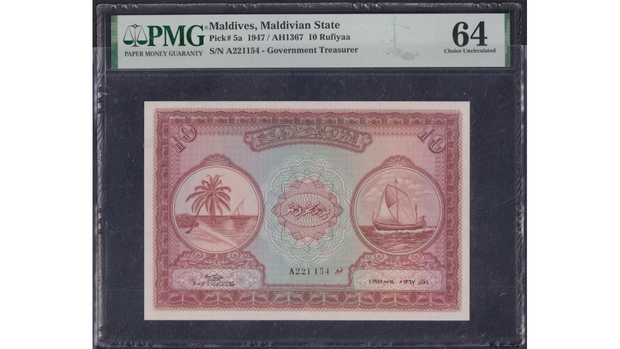 Мальдивские Острова 10 руфий 1947 (MALDIVES 10 Rufiyaa 1947) P 5a: UNC