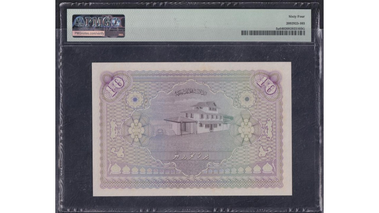 • Мальдивские Острова 10 руфий 1947 (MALDIVES 10 Rufiyaa 1947) P 5a: UNC