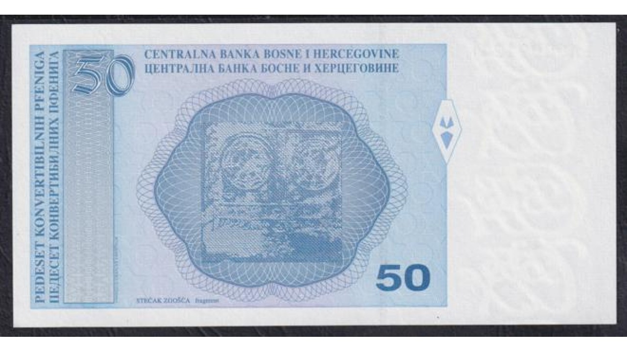 Босния и Герцеговина 50 пфенигов ND (1998 г.) (BOSNIA & HERZEGOVINA 50 Konvertibilnih Pfeniga (˝ Konvertibilna Marka) ND (1998)) Р57:Unc