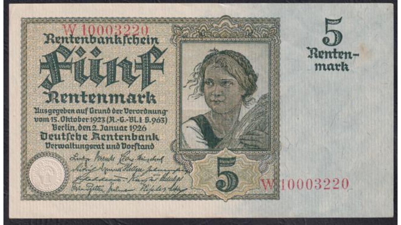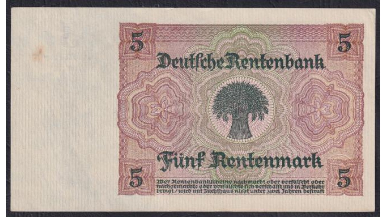 • Германия 5 рентмарок 1926 год, W10003220 (Germany 5 rentenmark 1926 year) P 169: UNC-