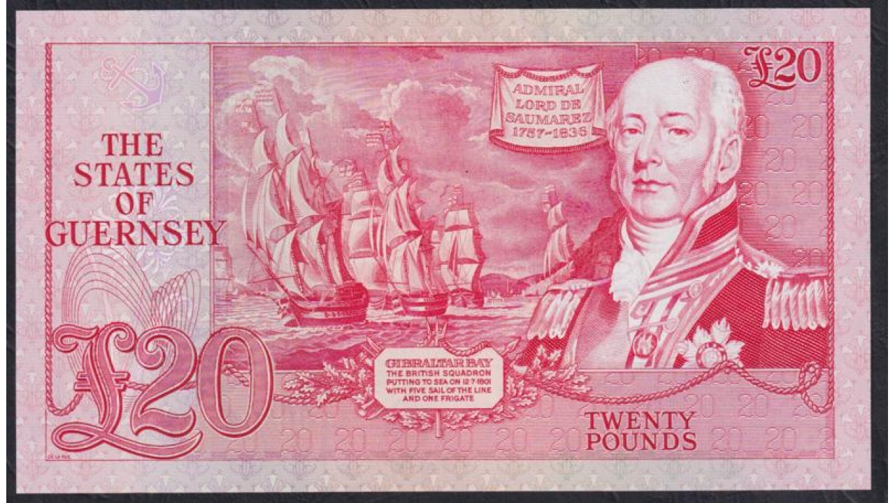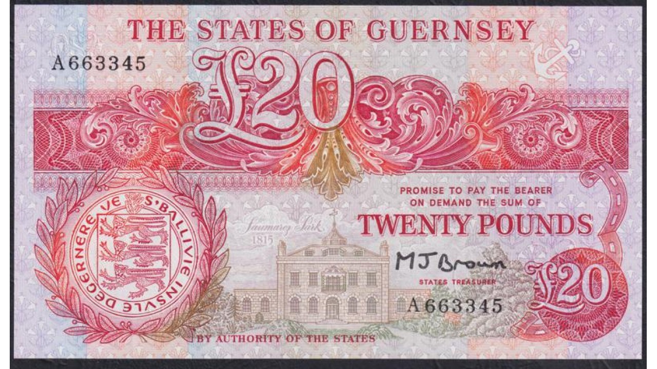 • Гернси 20 фунтов ND (1980-1989)  (GUERNSEY 20 pounds ND (1980-19890)) P 51b: UNC