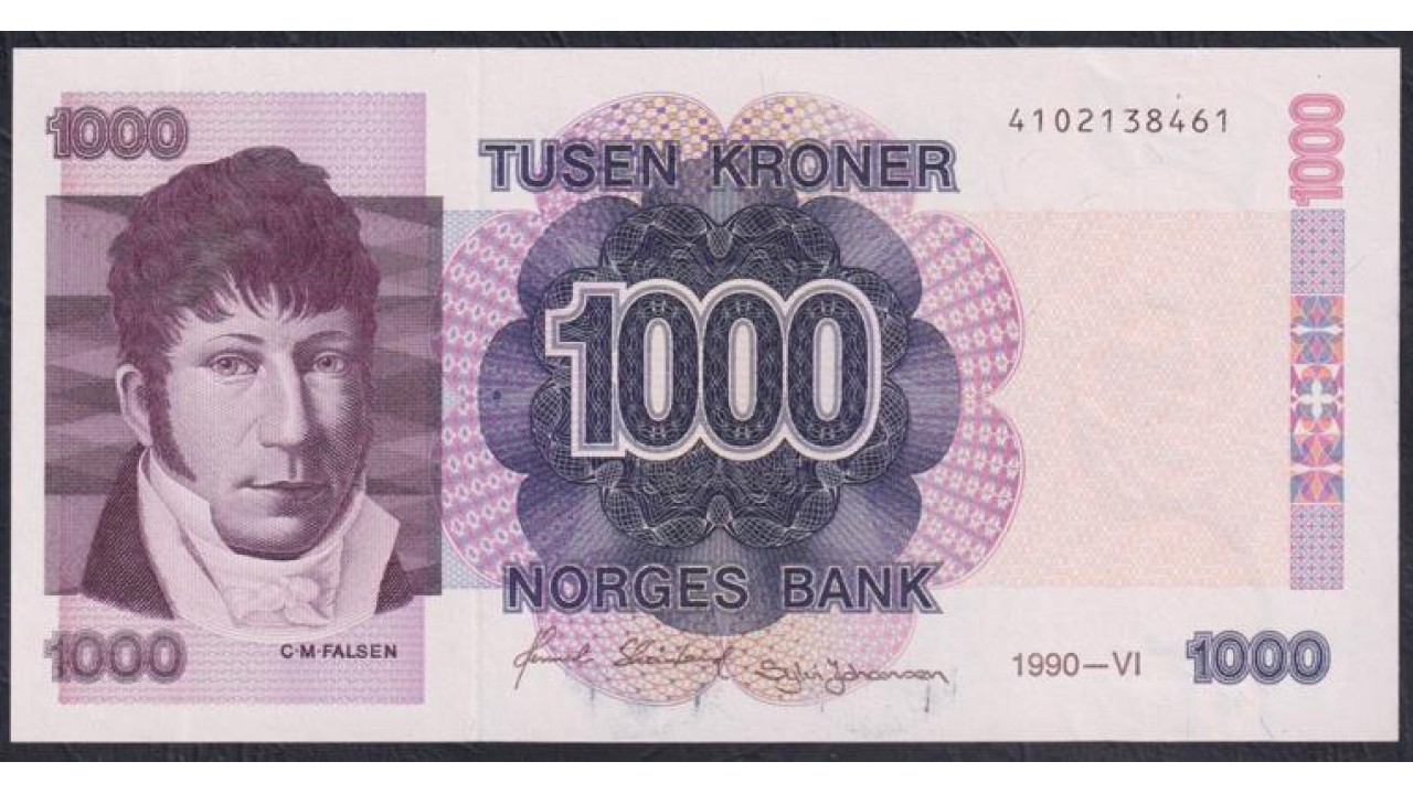 • Норвегия 1000 крон 1990 (NORWAY 1000 Kroner 1990) P 45а(2): UNC