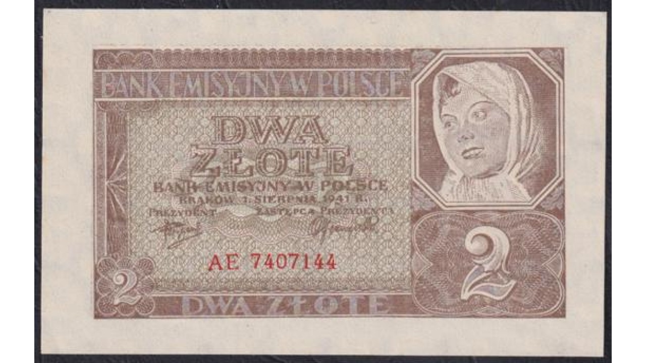 Польша 2 злотых 1941 года (POLAND 2 Złote 1941) Р 100: UNC