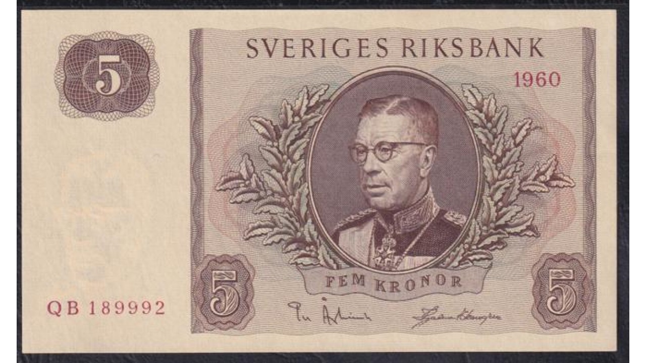 Швеция 5 крон 1960 года, QB 189992 (Sweden 5 kronor 1960) P 42fe: UNC