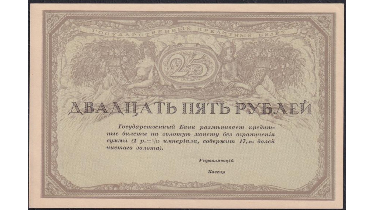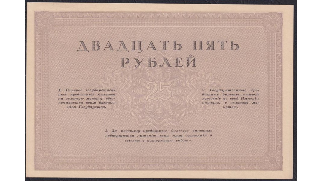 Россия 25 рублей 1917-1918 года Союз Акционерных Коммерческих Банков (RUSSIA 25 Rubley Gosudarstvenniy ND (1917) Remark remainders only do exist) P 43: UNC-