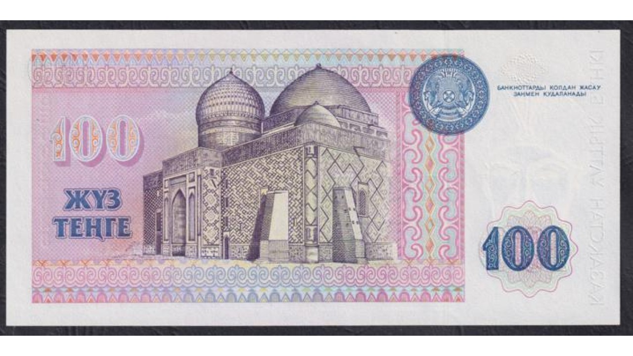 • Казахстан 100 тенге 1993 года, Серии BE6945628, Printer National Bank of Republic of Kazakhstan (KAZAKHSTAN 100 Tenge 1993, Series BE6945628, Printer National Bank of Republic of Kazakhstan) P 13b: UNC
