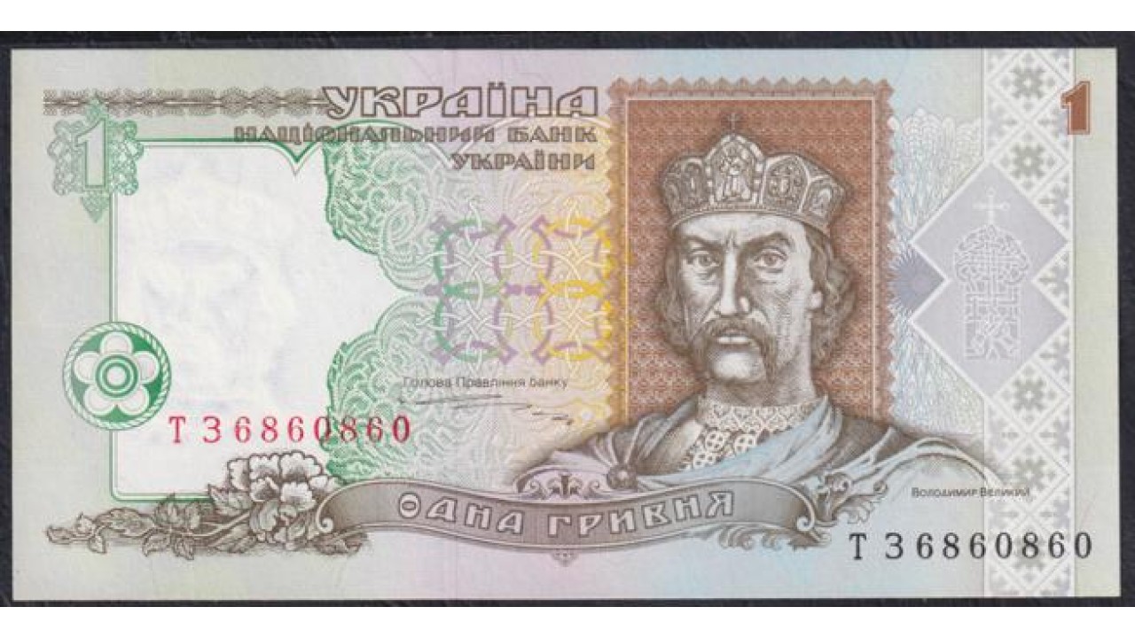 • Украина 1 гривна 1995 г. (UKRAINE 1 Hrivnya 1995) P108b:Unc