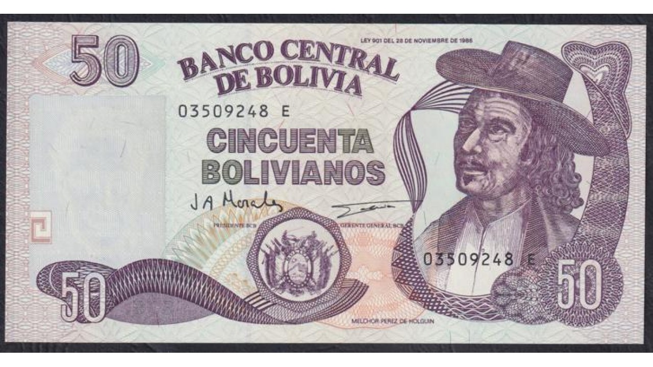 Боливия 50 боливиано 1986 (BOLIVIA 50 bolivianos 1986) P 206b: UNC