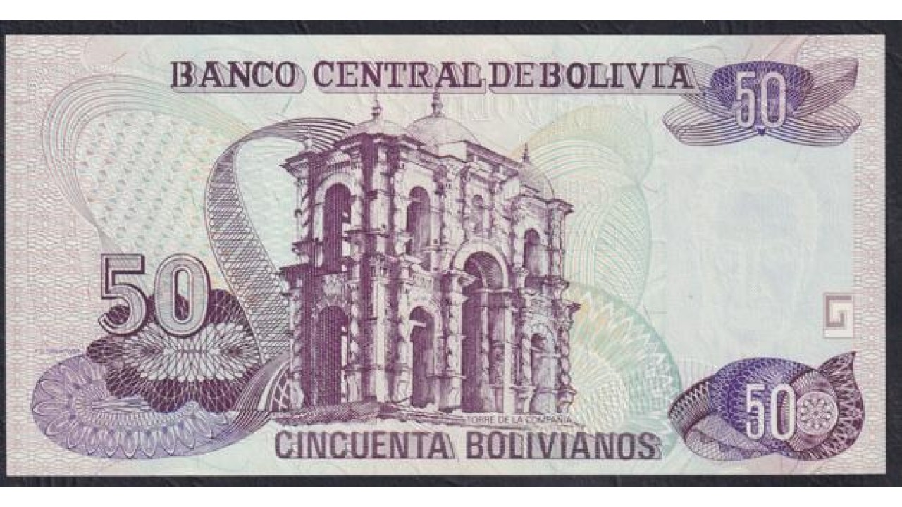 • Боливия 50 боливиано 1986 (BOLIVIA 50 bolivianos 1986) P 206b: UNC