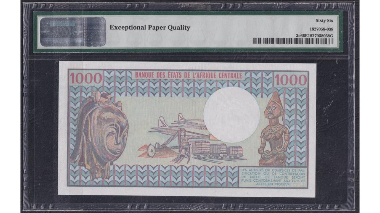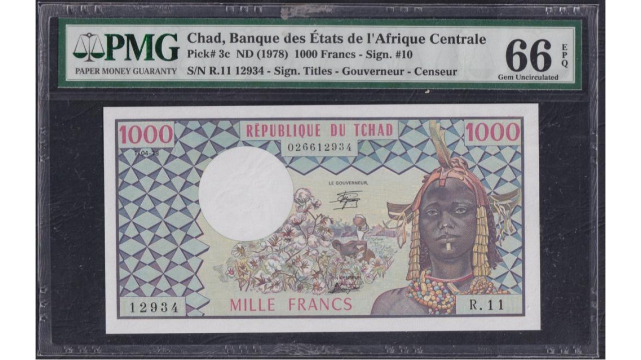 • Чад 1000 франков 1978 г. (CHAD 1000 francs 1978) P 3c: UNC PMG 66 Gem Uncirculated EPQ