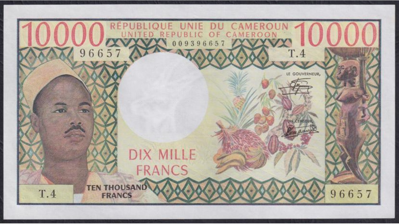 • Камерун 10000 франков (1974-81) (CAMEROON 10000 Francs (1974-81)) P 18b: UNC
