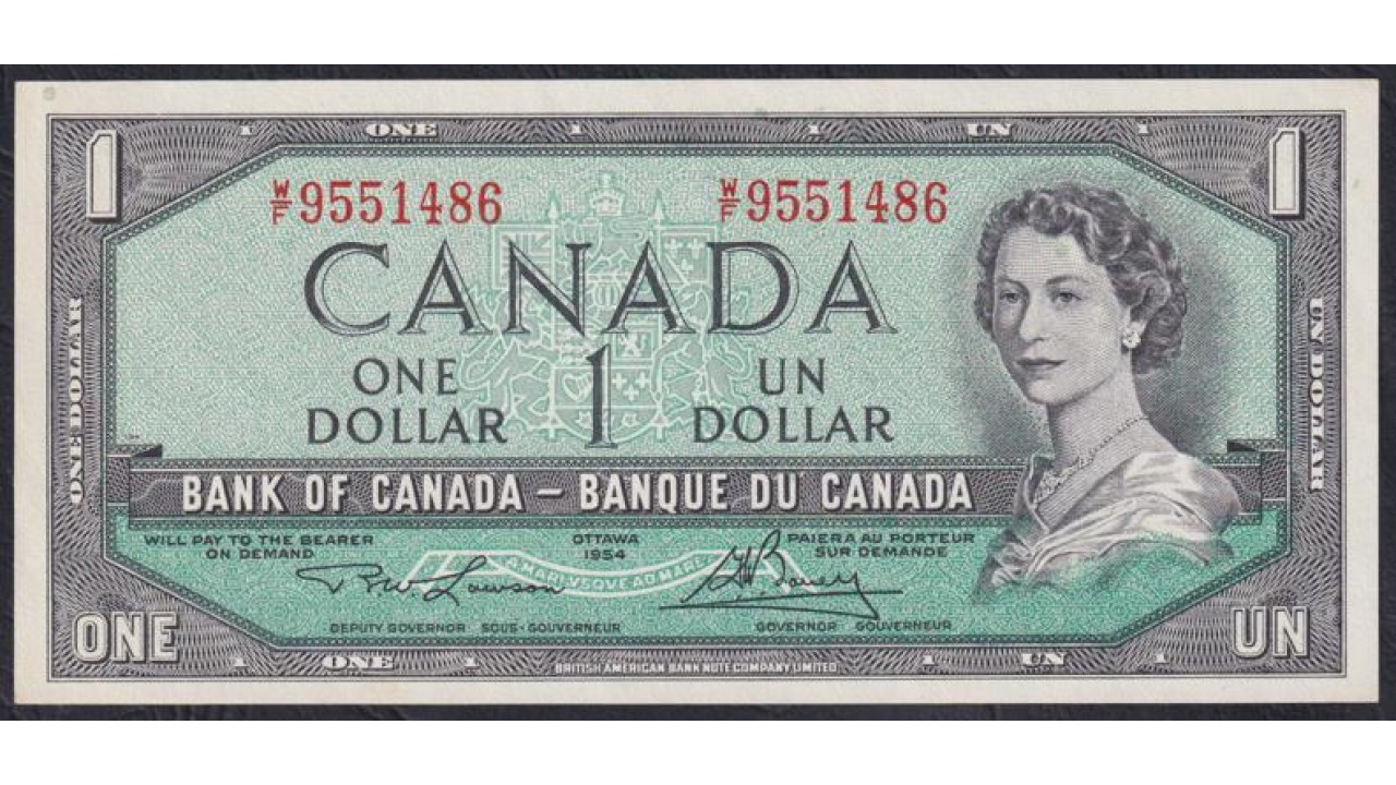 Канада 1 доллар 1954 (CANADA 1 dollar 1954) P 75d : UNC