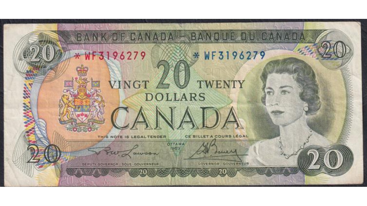Канада 20 долларов 1969 года, серия Замещения (CANADA 20 dollars 1969 Replacement) P89r: VF