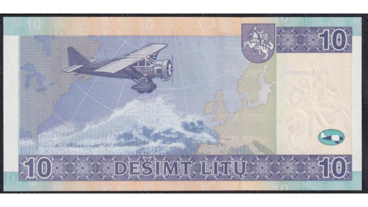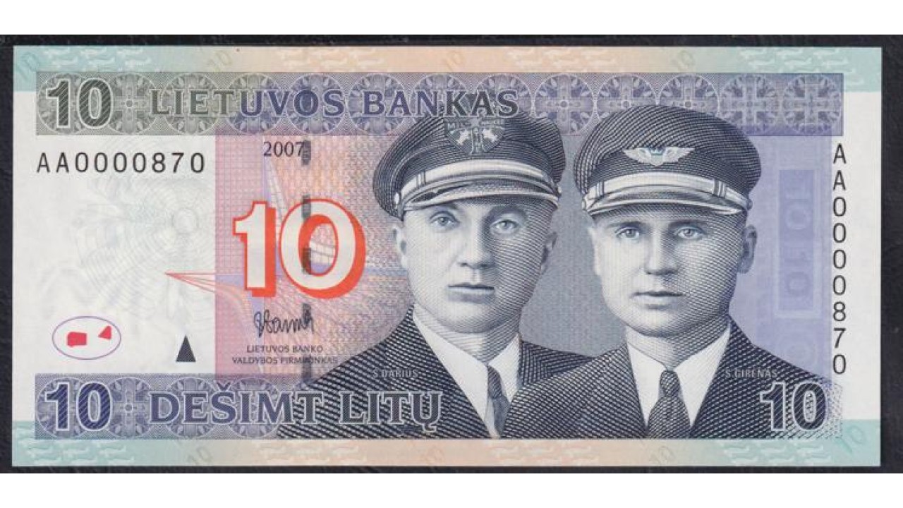 Литва 10 лит 2007 года, серия AA0000870(Lithuania 10 litu 2007 series AA) P 68: UNC