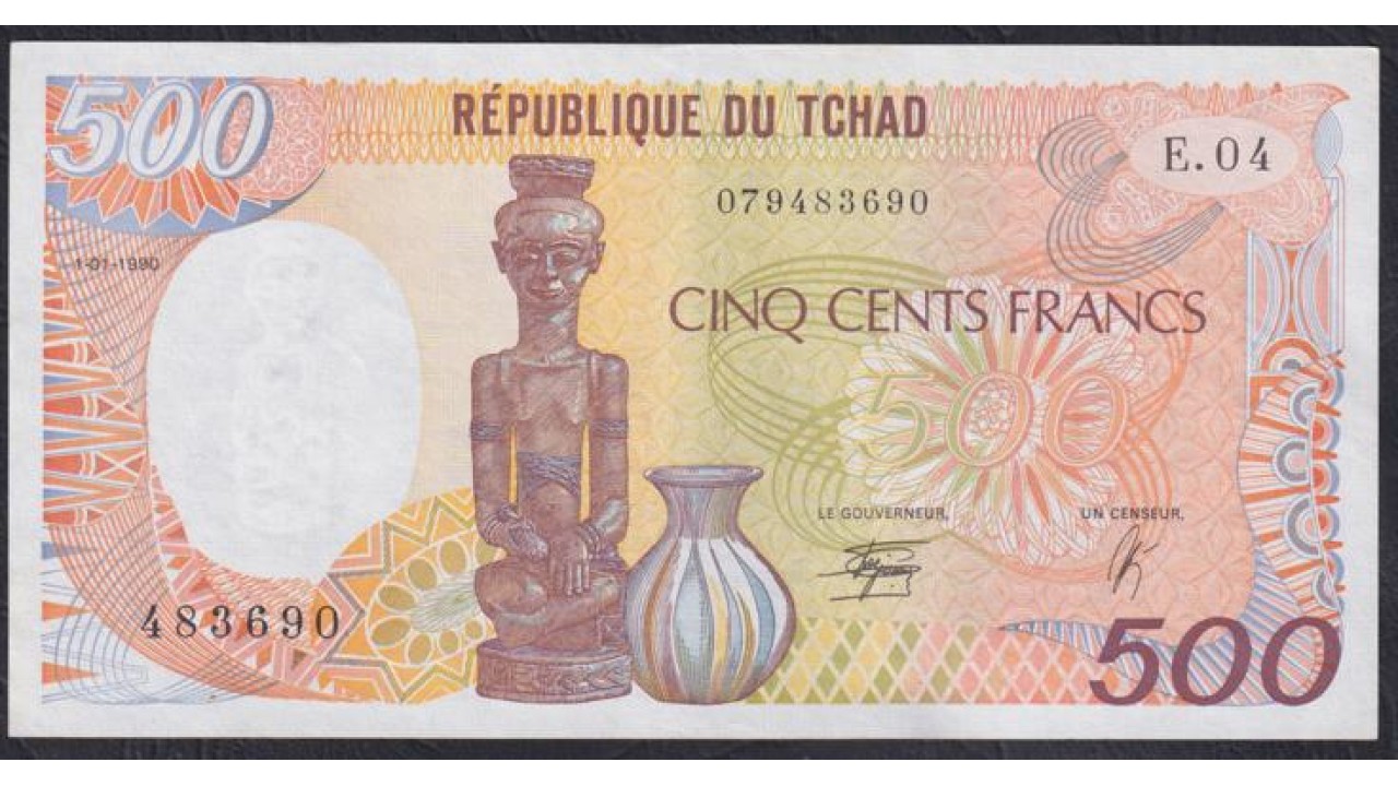 • Чад 500 франков 1990 (CHAD 500 francs 1990) P 9c: XF/aUNC