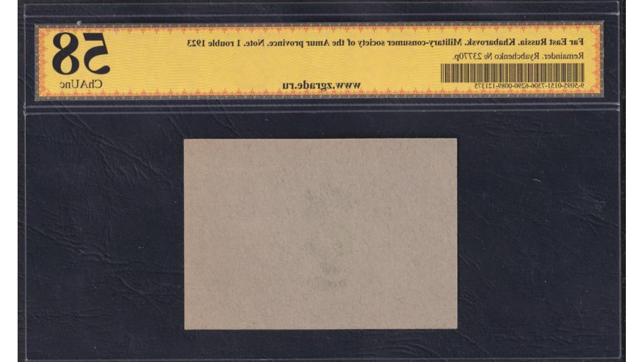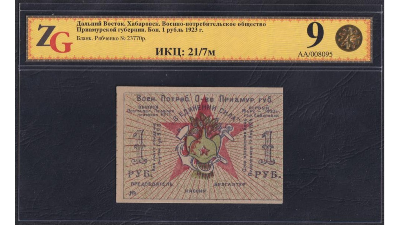 • Дальний Восток, Хабаровск, Военно-Потребительское общество Приамурской Губернии. Рябченко № 23770р: ZG 58 ChAUNC, без перегибов, загибов, итд.
