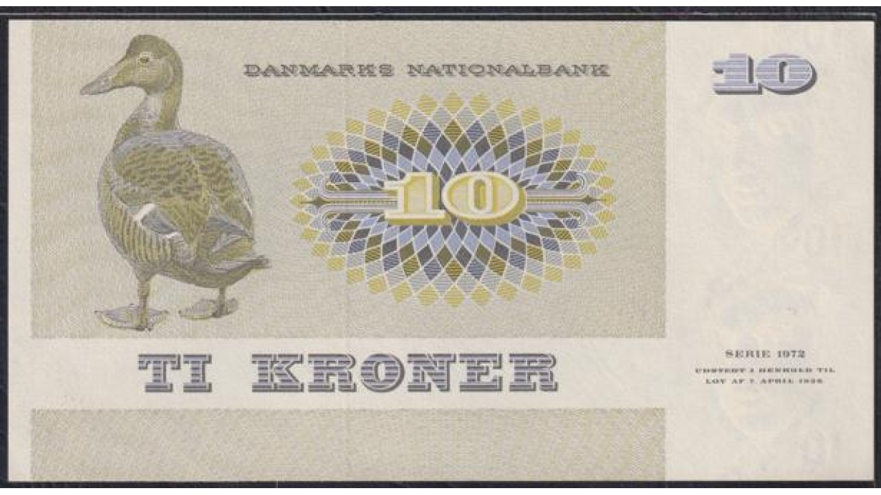 • Дания 10 крон 1972 (DENMARK 10 Kroner 1972) P 48a: UNC