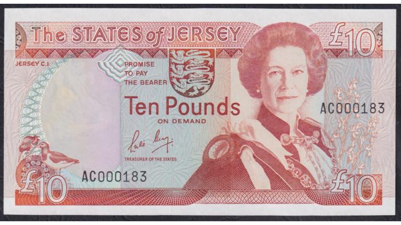 • Джерси 10 фунтов ND (1989) Низкий Номер! (JERSEY 10 Pounds ND (1993)) P 17: UNC