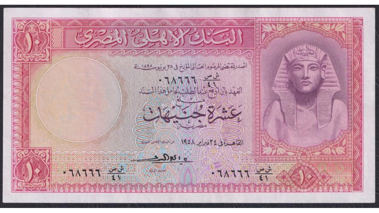 Египет 10 фунтов 1958 год (EGYPT 10 pounds 1958) P 32(3): XF