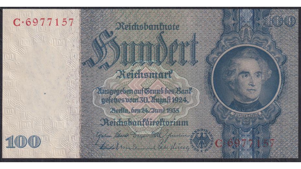 • Германия 100 рейхсмарок 1935 год, C.6977157 (Germany 100 Reichsmark 1935) P 183b: UNC