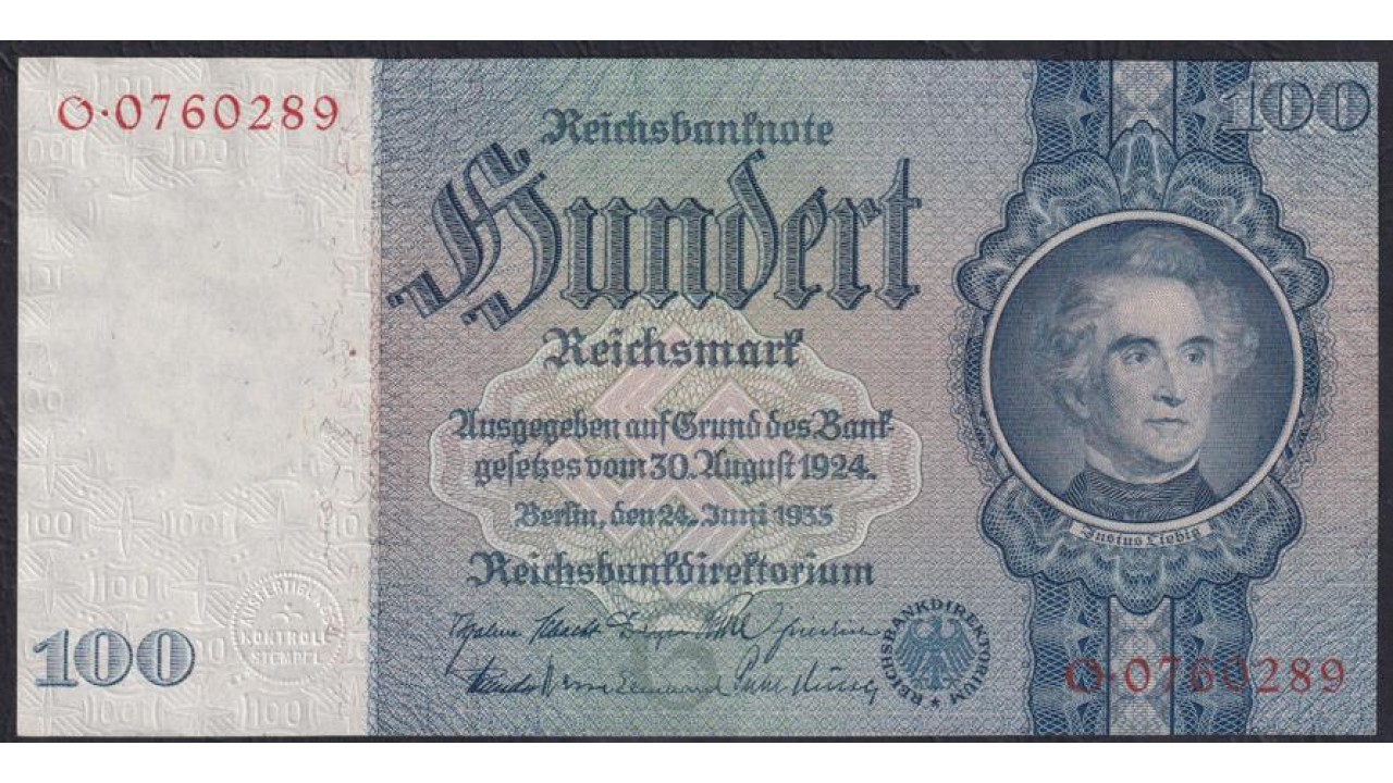 • Германия 100 рейхсмарок 1935 год, O.0760289 (Germany 100 Reichsmark 1935) P 183a: UNC