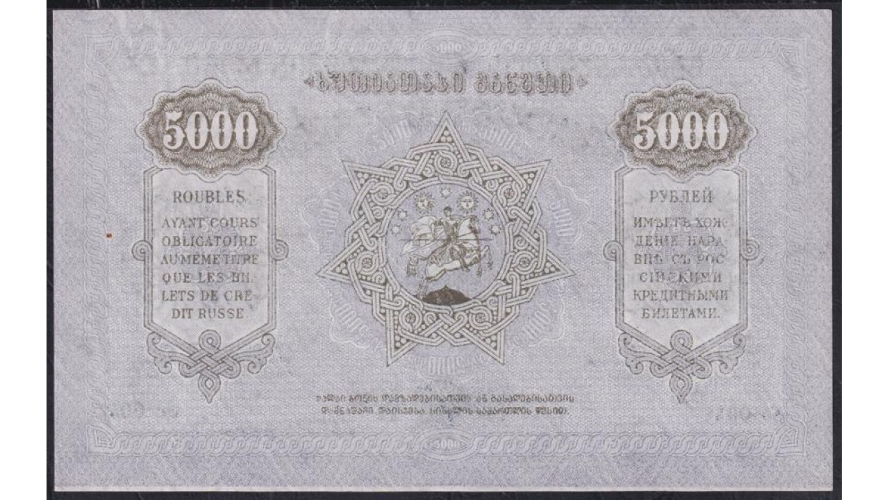 • Грузинская Демократическая Республика 5000 рублей 1921 года, С В/З (Georgia Democratic Republic 5000 rubles 1921, Watermark) P 15 : aUNC/UNC