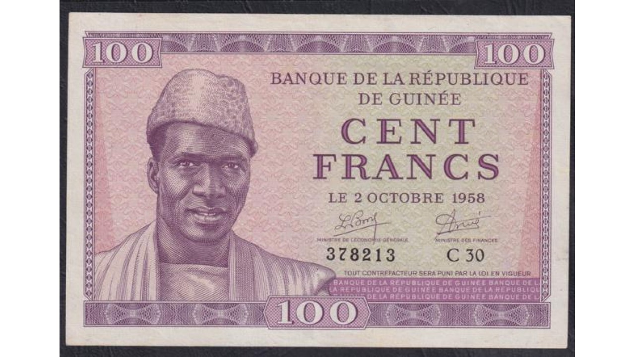 • Гвинея 100 франков 1958 (GUINEE 100 francs 1958) P 7: XF/aUNC