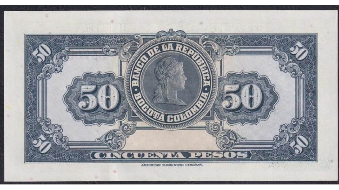 Колумбия 50 песо 1953 года, 3470572 (COLOMBIA 50 peso oro 1953) P 393d: aUNC/UNC